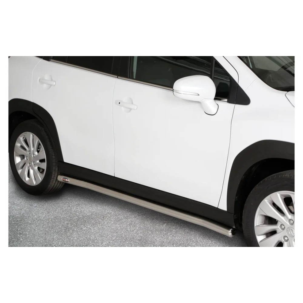 Compatibilita': Suzuki S-Cross Hybrib immatricolata dal 2022. Coppia tubi laterali in acciaio inox lucido, diametro 60mm. Fornito con kit montaggio specifico.