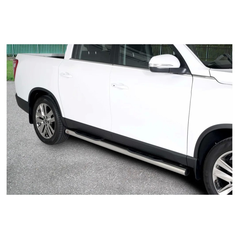 Compatibilita': SsangYong Rexton Sports XL immatricolata dal 2018. Realizzate in acciaio inox, diametro 70mm, lucidate a specchio. Oltre a facilitare l'accesso all'abitacolo per la loro posizione e per gli inserti in gomma antiscivolo rendono il look della tua vettura unico e accattivante. Fornite di staffe specifiche e kit di montaggio. NOTE: disponibile anche nella versione Black Edition
