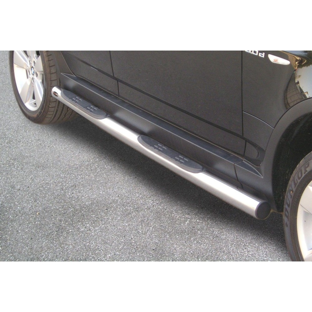 Compatibilita': Bmw X3 immatricolata dal 2003 al 2010. Coppia pedane laterali in acciaio inox lucido, diametro 70mm. Versione: Ovale
