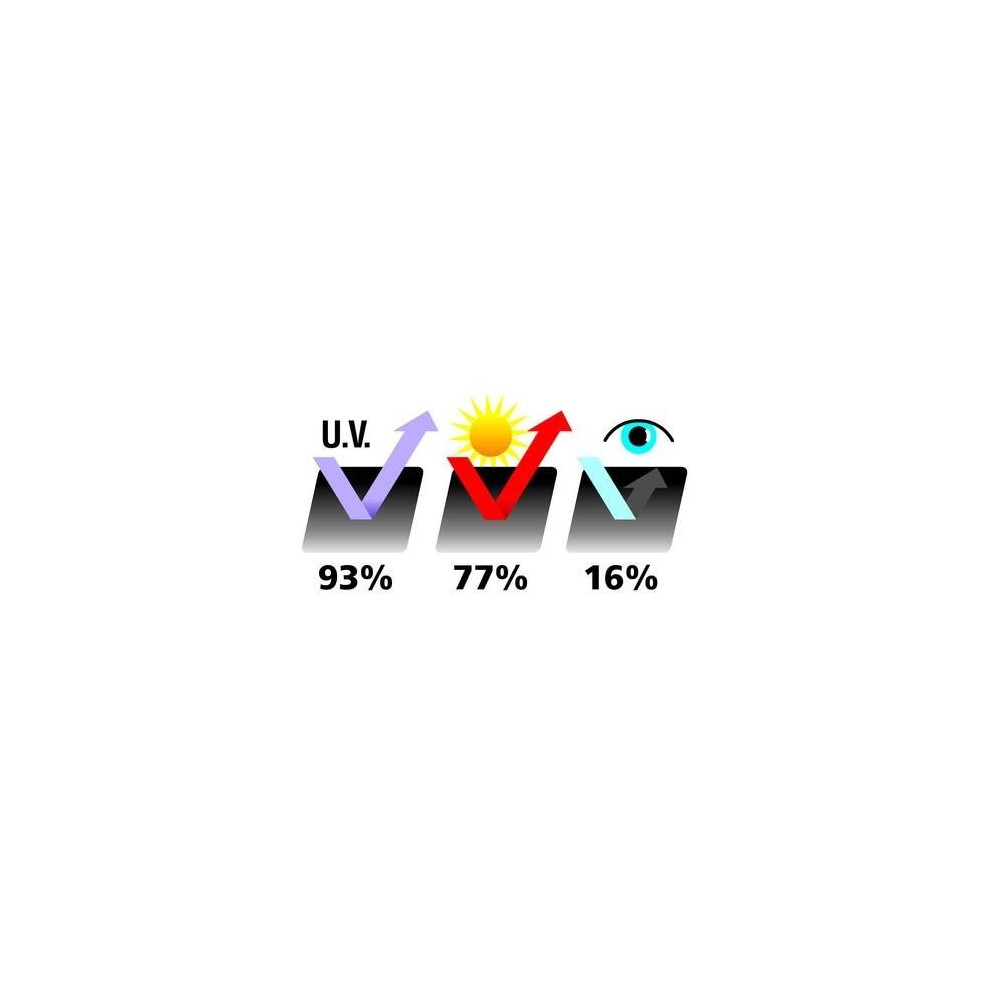 IN PVC, REMOVIBILE E RIAPPLICABILE, GRIGIO. Pellicole atermiche oscuranti. Eliminano l'eccessivo bagliore. Aumentano la privacy per gli occupanti. Cambiano il look della vettura. Proteggono l'interno della vettura dai raggi ultravioletti. Adesivo ad acqua, kit di montaggio con cutter, spatolina e istruzioni dettagliate. Dimensioni: 300x50cm. RAGGI U.V.: RIFLESSI 93,3%, TRASMESSI 6,7%. ENERGIA SOLARE: RIFLESSA 4%, ASSORBITA 73%, TRASMESSA 23%. LUCE TRASMESSA: 16,5%. LAMINATURA ANTIGRAFFIO: NO