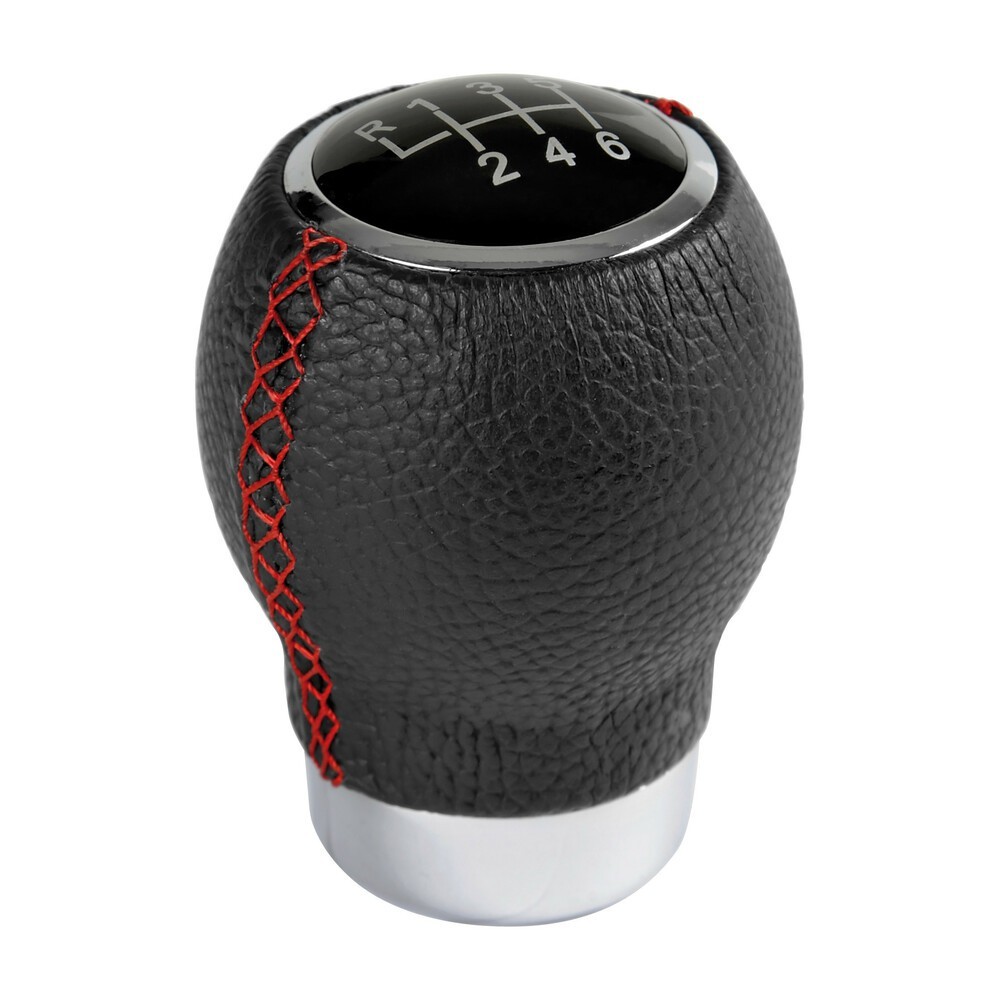Pomello cambio in pelle nera con cuciture rosse e alluminio cromato. 7 emblemi intercambiabili. Montaggio fai da te tramite kit con adattatori e chiave esagonale in dotazione. Attacco brevettato universale idoneo per leve cambio standard (diametro 15 mm max) e leve cambio speciali con ghiera di innesto retromarcia a siringa (diametro 31 mm max)