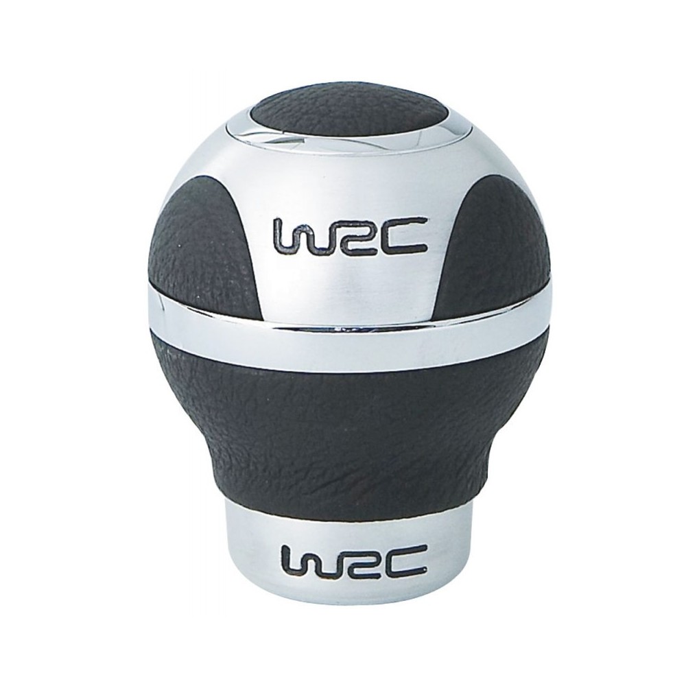 Pomello per leva del cambio con marchi WRC. In alluminio spazzolato con inserti in pelle nera. Universale, provvisto di chiavi e viti per il montaggio. In scatola metallica con marchio WRC.