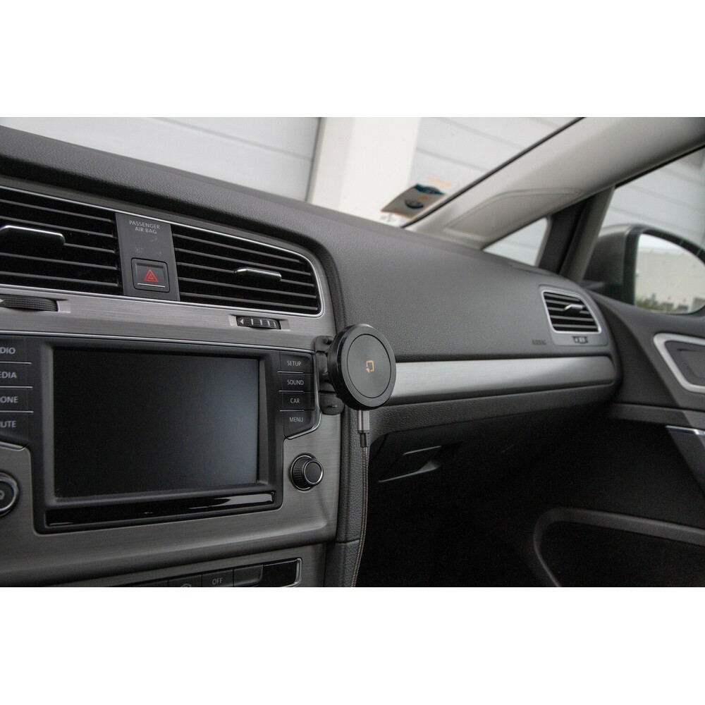 Si fissa facilmente al cruscotto tramite biadesivo incluso