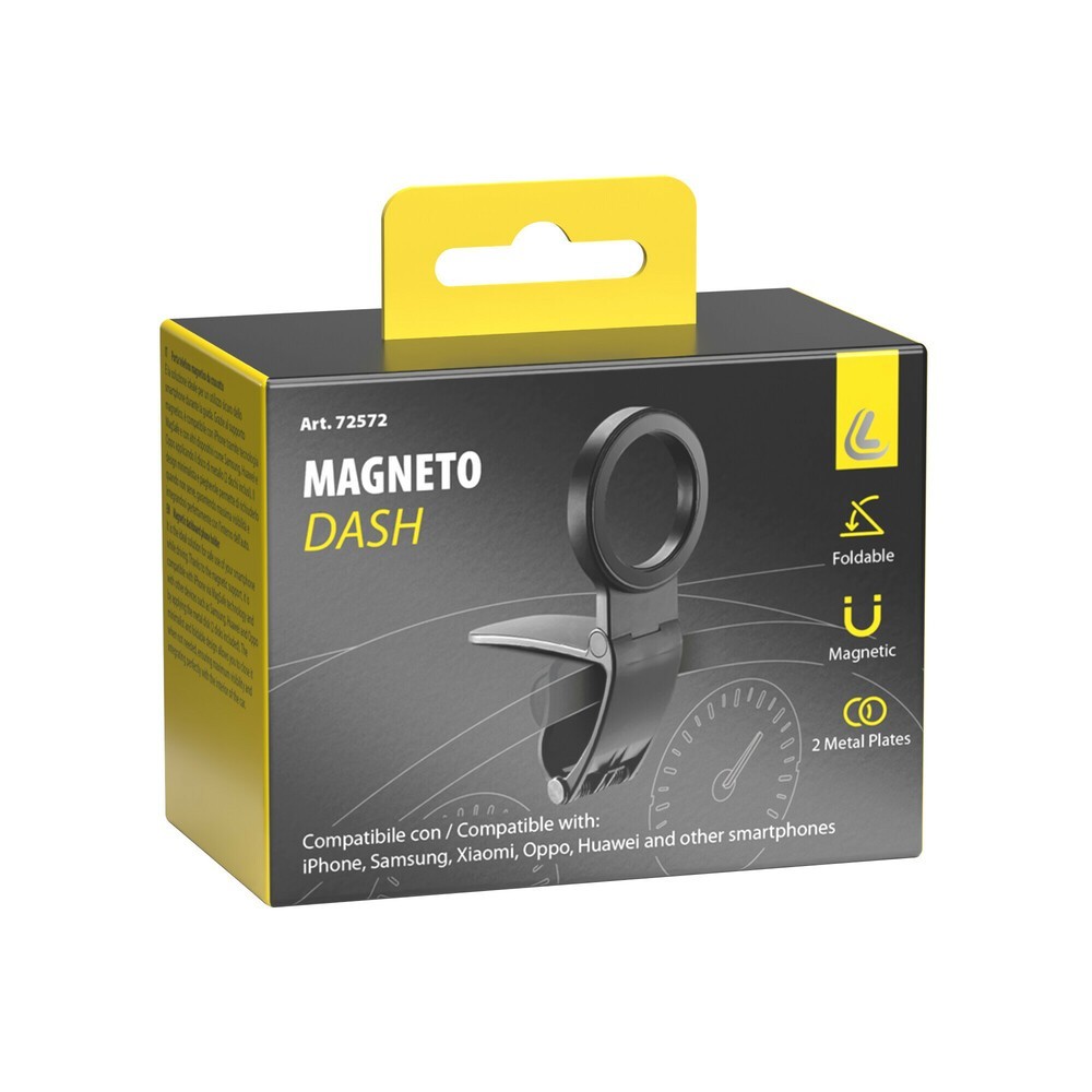 È la soluzione ideale per un utilizzo sicuro dello smartphone durante la guida. Grazie al supporto magnetico, è compatibile con iPhone tramite tecnologia MagSafe e con altri dispositivi come Samsung, Huawei e Oppo applicando il disco di metallo (2 dischi inclusi). Il design minimalista e pieghevole permette di richiuderlo quando non serve, garantendo massima visibilità e integrandosi perfettamente con l'interno dell'auto.