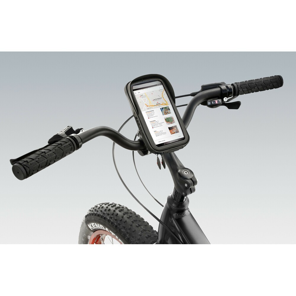 Custodia universale per smartphone con visiera parasole, adatto per dispositivi max 85x170mm. Impermeabile, foro passacavo per l'alimentazione elettrica. Pellicola frontale trasparente per consentire l'utilizzo del touch screen. Cavetto di sicurezza incluso. Specifica per supporti OPTI- by Lampa che ne permette il fissaggio su moto (esempio codici 90437,90438, 90439, 90436, 90450)