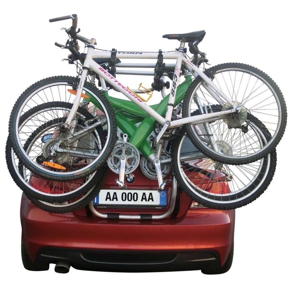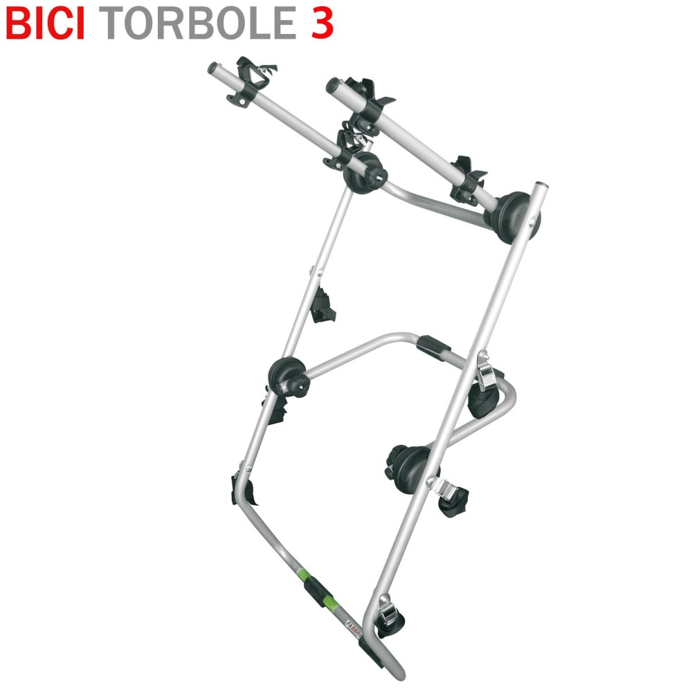 Bici Torbole: portabici posteriore per il trasporto di 3 bici, realizzato per vetture con cofano o portellone standard cosi' come per vetture con spoiler, lunotti di vetro o paraurti in plastica. Realizzato in acciaio particolarmente robusto, verniciato silver con trattamento antiruggine = garanzia di un'assoluta sicurezza anche in situazioni estreme. Con 4 snodi dentellati in ABS con doppio raggio per una perfetta tenuta anche su dossi stradali e strade sterrate. Con 6 fibbie e 6 cinghie con ganci plastificati di alta qualita' antigraffio. Richiudibile quando viaggia a vuoto (senza bici) = minor ingombro = maggiore sicurezza. Vedi lista applicazione per auto. Non copre la targa, non è quindi necessario l'acquisto di una targa ripetitrice.