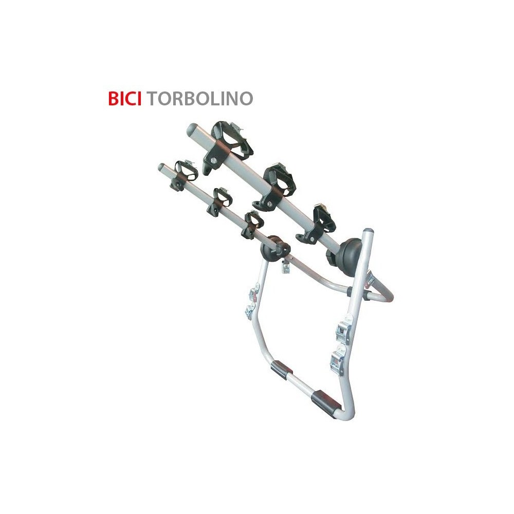 Bici Torbolino: tubo in acciaio verniciato grigio diametro 25mm. Appoggi a vettura in gomma antigraffio e antimacchia. Snodi in materiale termoplastico ad elevata resistenza meccanica. Posizionatori bici in materiale plastico. Cinghietti rivestiti in gomma. Fibbie per cinghie di ancoraggio a vettura montate tramite tasselli antivibranti. Ganci ancoraggio a vettura in acciaio rivestito in materiale plastico antigraffio. Fornito smontato. Conforme alla Normativa DIN 75302