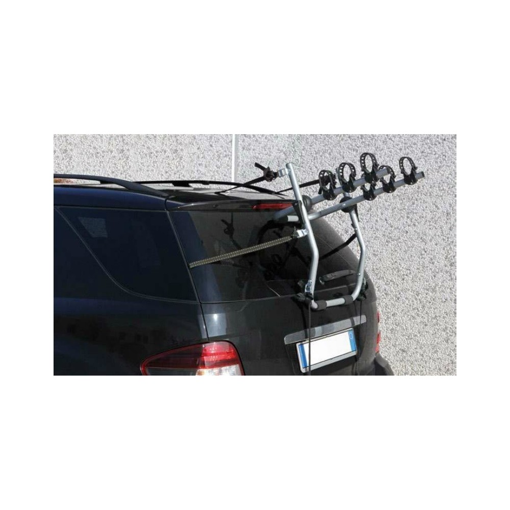 Portabiciclette posteriore. Compatibile con i modelli di biciclette ad intelaiatura triangolare. Montaggio facile e veloce, senza fori. Realizzato in tubo tondo d'acciaio da 25mm di diametro. Sostegni e cinghie di fissaggio in plastica antigraffio. Snodi di regolazione in nylon per una perfetta adattabilita' a qualsiasi vettura. Sicuro e versatile per il trasporto di 3 biciclette.