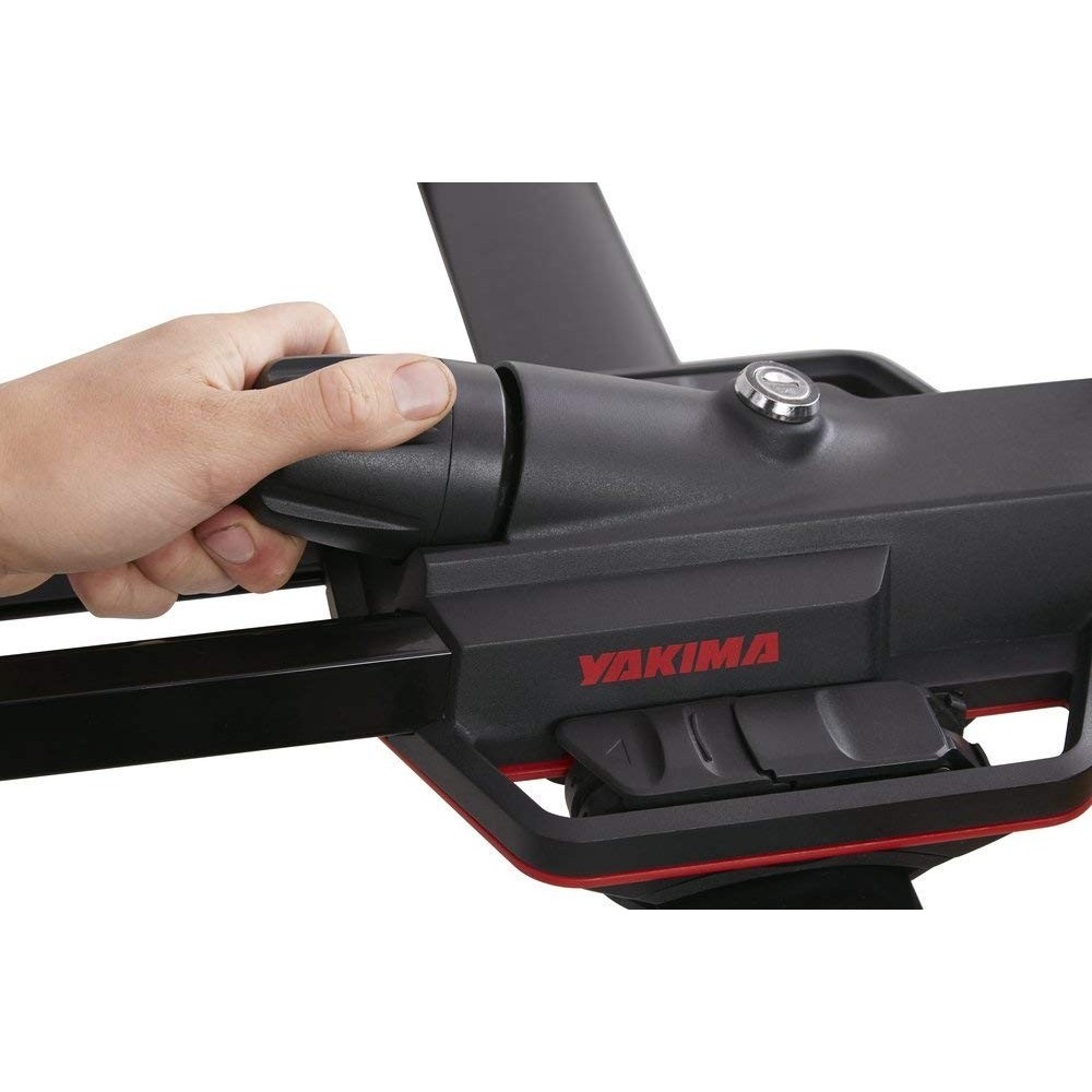 Yakima HighSpeed, Trasporta in modo sicura una grande varieta' di bici; da strada, MTB fino Fat. Montaggio universale su tutte le barre (rotonde, quadrate, ovali, rettangolari). Vassoio portaruota scorrevole che lascia libero il portellone posteriore da qualsiasi interferenza ed accoglie ruote fino a 5''. Kit per il fissaggio del portabici alla canalina superiore delle barre che ne sono dotate venduto separatamente (codice Y8002122)