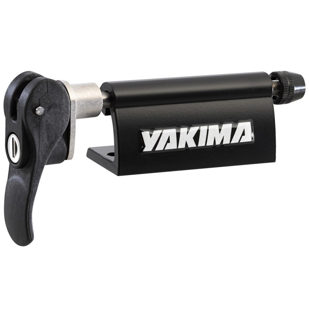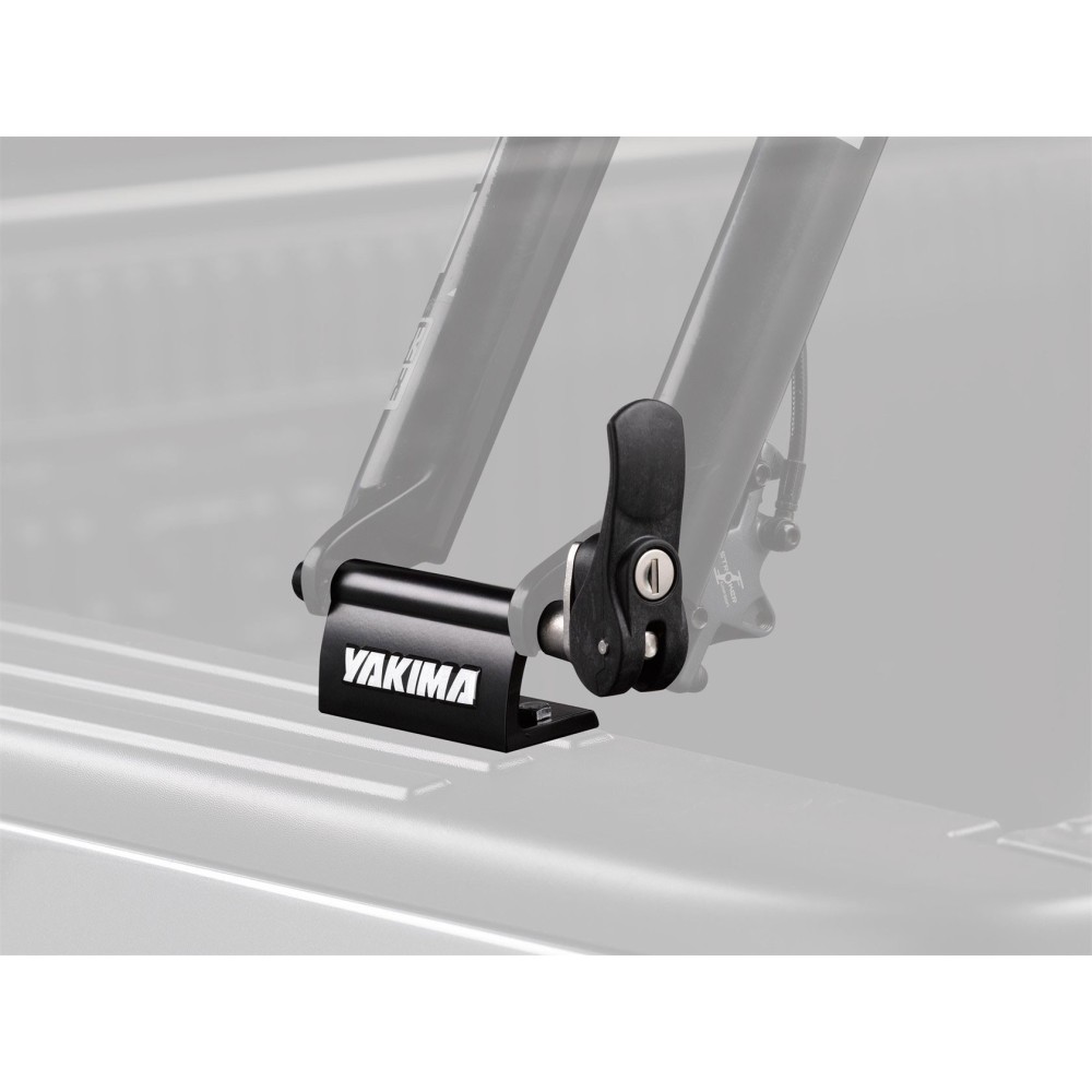 Yakima Locking Blockhead, staffa fissaggio ciclo a forcella con serratura multiuso, per pick-up, furgoni, pavimenti, o pareti.. Un singolo blocco permette di fissare una bicicletta. Specifico per fissare la bicicletta al pianale o alla sponda del pick-up, furgone, camion, camper. Idoneo anche per qualsiasi altra superficie come parete, garage, pavimento, cantina...Kit bloccaggio rapido del mozzo con escursione da 9 mm. Con morbido tampone per proteggere la vernice della carrozzeria. Prodotto in alluminio anodizzato nero resistente alla corrosione. Serratura inclusa