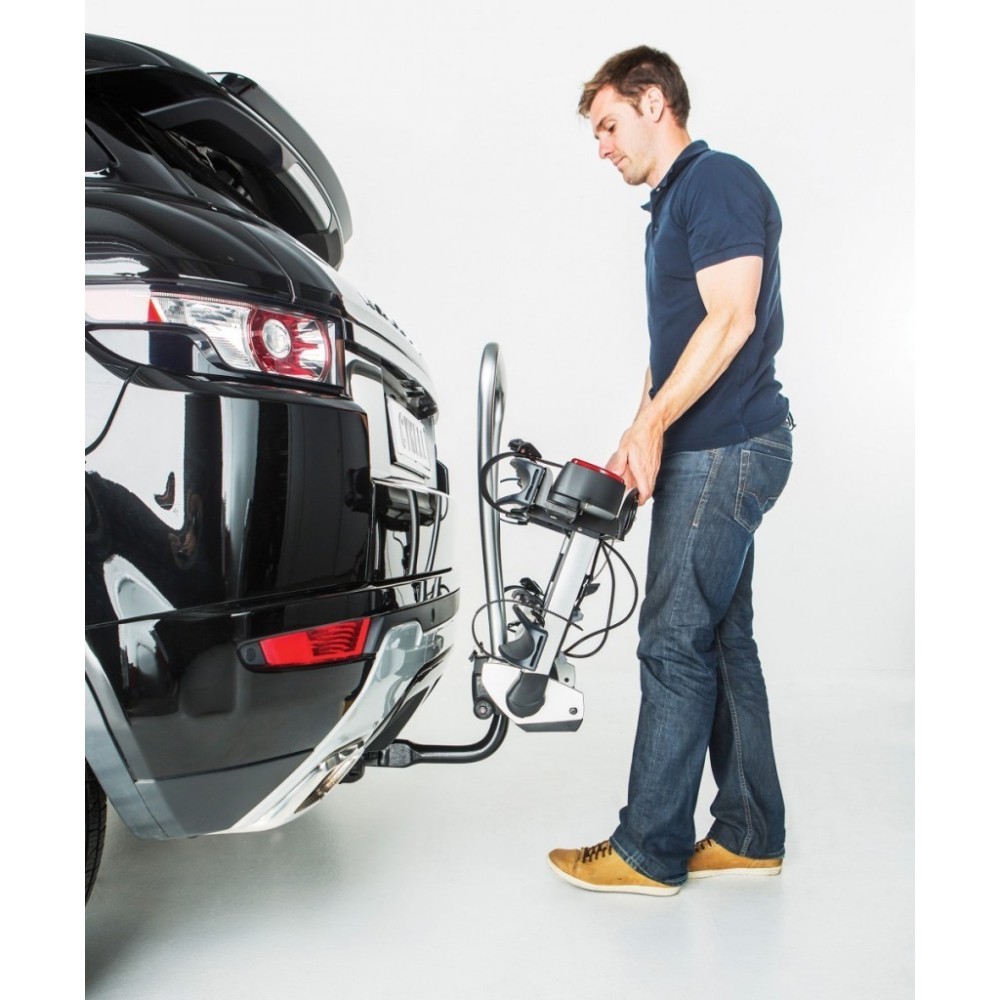 Portabiciclette Yakima per gancio traino 2 bici. Questi portabici per gancio traino sono un innovazione tecnica che soddisfa i ciclisti piu' esigenti. Il sistema ''Just Click'' rende rapida, facile e sicura l'installazione al gancio traino del veicolo. Un indicatore colorato (verde/rosso) segnala eventuali anomalie di fissaggio. Alloggiamenti ruote estensibili per caricare la maggior parte delle biciclette in commercio. Adatti anche per biciclette elettriche. Sistema di bloccaggio antifurto integrato (ILS) per una totale sicurezza. Il sistema reclinabile consente l'accesso al bagagliaio posteriore. Estensione opzionale per una bicicletta aggiuntiva (art.Y8002488). Gruppi ottici con portatarga integrato funzionanti tramite spinotto (Jaegers) 13 poli o con adattatore incluso a 7 poli. Reclinabile per un rapido accesso al bagagliaio posteriore. Richiudibile quando inutilizzato e trasportabile come un trolley.