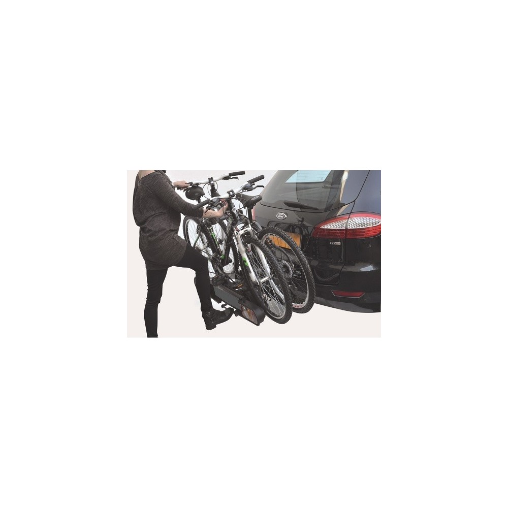 Portabici in acciaio per gancio traino. Disponibile nella versione 2, 3 e 4 bici (art. PER708 - PER708/3 - PER708/4). Dotato di un sistema di aggancio e sgancio estremamente compatto e funzionale. Dispone di chiusura a chiave tra portabici ed auto. Si inclina mediante l'uso di un pedale per facilitare il carico posteriore. Poggiaruote ampio. Fornito di braccetti per tutte le bici. Tutti i braccetti sono forniti di pomello antifurto. Verniciatura antigraffio. Cinghia di sicurezza cucita direttamente sul portabici. Completo di barra ripetitrice con fanali 13 poli omologati secondo direttiva europea. Il prodotto e' omologato secondo direttiva europea. Carico max. per bici: 30Kg (totale 60Kg). Tipologia di attacco luci: 13 poli. Larghezza max. ruote bici: 80mm