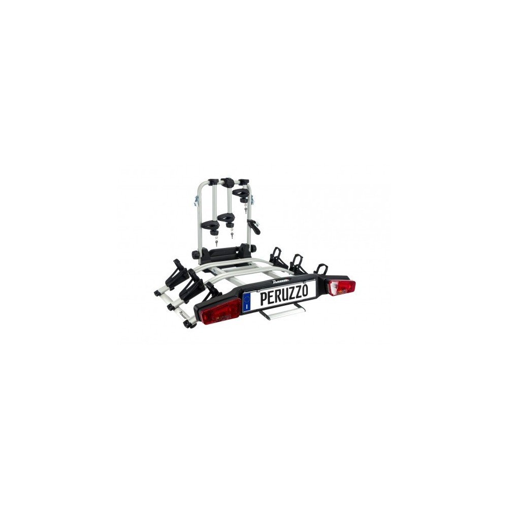 Zephyr e' perfetto per il trasporto di bici elettriche: (1) interasse maggiorato al fine di consentire un'agevole carico delle bici elettriche (2) peso massimo complessivo di carico 60 kg (3) rampa di carico inclusa (4) inclinabile tramite un comodo pedale (5) inclusi tutti i braccetti per le bici (6) dotato di sistema a sgancio rapido (7) chiusura a chiave del portabici sul gancio e di pomelli con chiave per la sicurezza delle bici (8) poggiaruota ampi con cinghie a cric e protezioni in gomma su punti di contatto della ruota (9) il portabici puo' essere trasformato in una versione 4 bici standard mediante l'acquisto dell'optional art 873. INFO TECNICHE: Materiale: alluminio -Dimensione bici: da 12 a 29 pollici - Dimensioni max sezione telaio bici: 7cm - Interasse max ruote bici: 130cm - Distanza tra i binari: 25cm - Peso a vuoto: 19kg - TESTATO TUV-GS