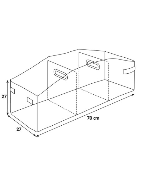 Organizer per baule (suv, fuoristrada, monovolume, pick-up, autovetture e furgoni). Pratica: estremamente compatta quando piegata e di grande capienza quando aperta. Ideale per lo shopping giornaliero ed anche per uso professionale su veicoli da lavoro. Resistente, prodotta interamente in poliestere 600D antistrappo, impermeabile e con alta resistenza all'usura e alle sollecitazioni. Fissaggio al baule con nastri a strappo. 3 compartimenti, 2 maniglie