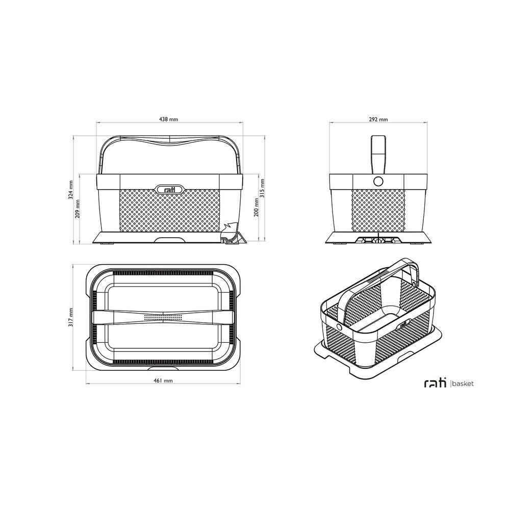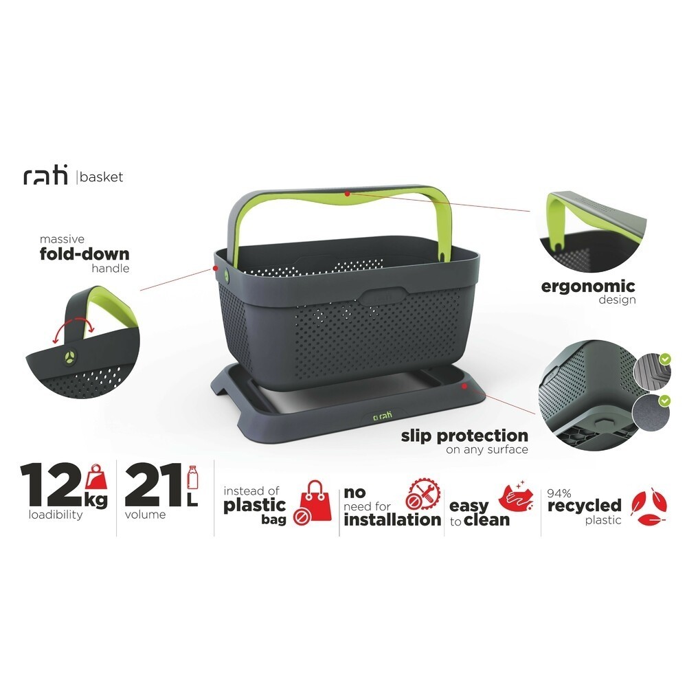 Pratico cestino per auto e camper. Ottimo anche per lo shopping e per altre attivita' all'aperto. La speciale base di alloggiamento da posizionarsi nel bagagliaio o nella cabina e' una caratteristica innovativa per il prodotto. Questa mantiene il cestino saldo al suo posto durante i viaggi. Base antiscivolo, rimane sempre ferma in posizione senza alcun sistema di fissaggio Posizionamento libero su ogni superficie. Volume equivalente agli attuali cestini pieghevoli, maneggevole, resistente, lavabile. Uso ergonomico con una sola mano. Capacita' di carico: 12 kg / 21 litri. Misure: 438x292x315mm