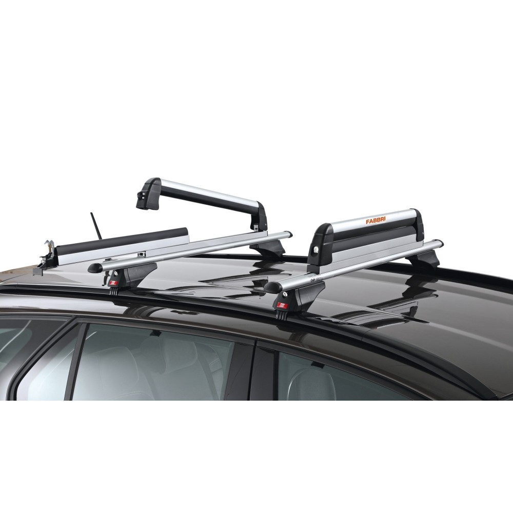 Porta sci e snow board con binario in alluminio estensibile per agevolare il posizionamento di sci e snow board, progettato per il montaggio su barre in alluminio con canalina (per barre standard e' necessario l'optional codice 6801863). Fornito con gancio di sicurezza in acciaio per bloccare gli sci anche quando il porta sci non e' chiuso con la chiave. Facile da montare, con chiavi di montaggio incluse nella confezione. Con antifurto.