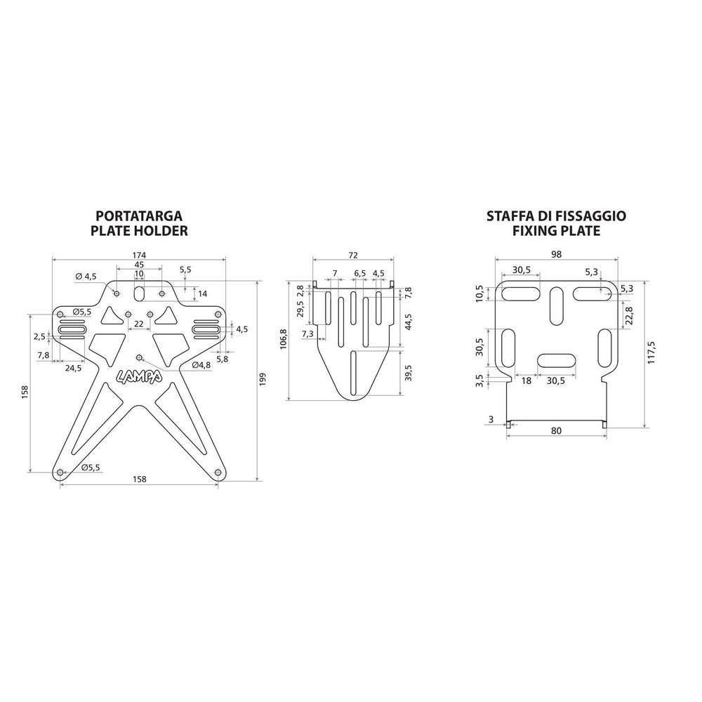 Portatarga moto Evo 3 con altezza ed inclinazione regolabili