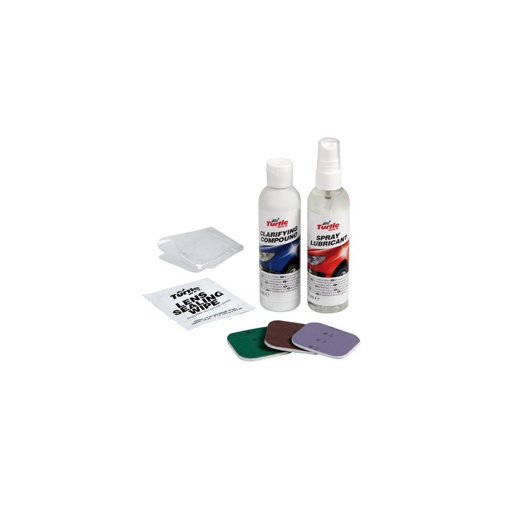 Elimina l'effetto opaco e l'ingiallimento dai fari con una semplice operazione che richiede 5 minuti per fanale. I 3 cuscinetti permettono una piu' profonda azione per far ritornare i fanali alle condizioni originali. Il kit contiene: 1 flacone da 118 ml di composto schiarente per fanali per rimuovere i mini-graffi e le abrasioni superficiali. 1 flacone da 118 ml di lubrificante spray per lubrificare i cuscinetti e proteggere i fanali. 3 cuscinetti di riparazione per rimuovere l'ossidazione e ripristinare la trasparenza dei vetri. 1 salvietta sigillante per fanali. 1 guanto