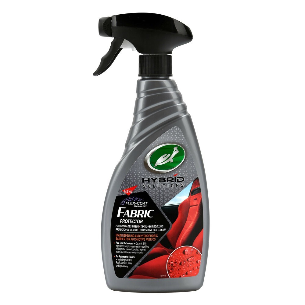 Prodotto per interni con tecnologia al Fluorocarbonio C6 e SIO2. Crea una barriera idrofobica contro i contaminanti a base di acqua e olio. Sicuro per tutti i tessuti: inclusi tetti morbidi, sedili automobilistici, tappeti, rivestimenti delle portiere senza alcun effetto sgradevole su colore/aspetto. Facile applicazione: applicazione tramite trigger mirata con tempi di asciugatura rapidi