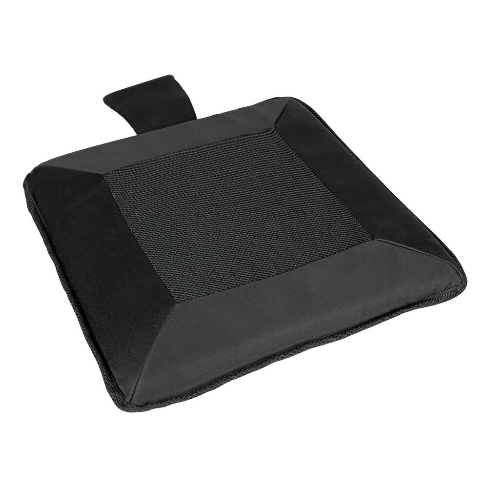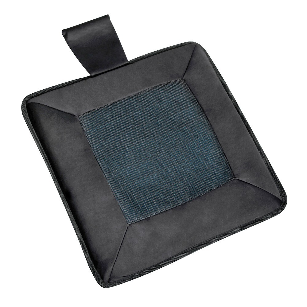 Cuscino in spugna ad effetto memoria stratificata con gel rilassante. Garantisce ottimo comfort e comodita'. Progettato per alleviare dolore e tensione proveniente dal fondoschiena, coccige, spina dorsale e zona sciatica. Completo di lembo per fissaggio sul sedile.