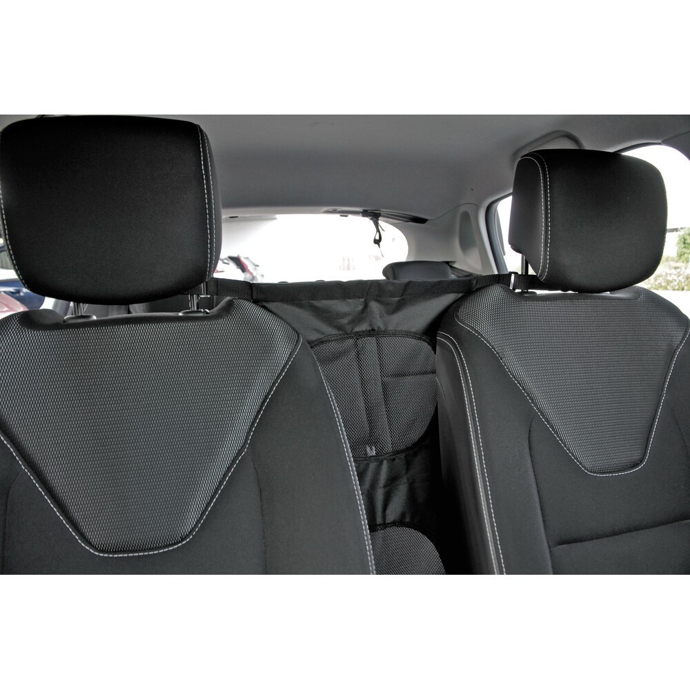 Barriera divisoria per cani, ideale per tutti i modelli di auto. Evita che il cane acceda ai sedili anteriori del veicolo costituendo impedimento e pericolo per la guida. Si installa tra i sedili anteriori e posteriori. Ripiegabile e salva spazio. Si fissa ai poggiatesta e sedili della vettura. Dimensione: 37x67cm