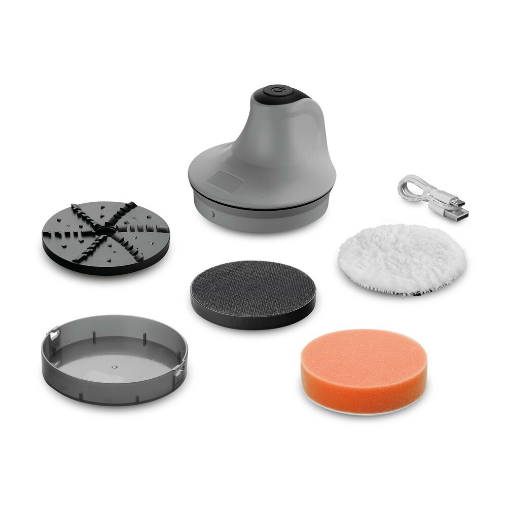 Multifunzione, per effettuare numerosi lavori di manutenzione, per la cura, pulizia, lucidatura dell'auto. Ergonomica, leggera, di piccole dimensioni per essere riposta facilmente nel bagagliaio. Senza fili per maggiore praticità e per essere usata in qualunque posizione e luogo. Utilizzabile con tutti i tamponi di diametro 10 cm / 4'' con sistema di fissaggio tipo velcro. Può essere utilizzata applicando gli appositi tamponi, come strumento per lucidare la carrozzeria, per la pulizia dei fanali, dei cerchi e degli interni, senza tampone con l'apposito disco come raschia ghiaccio. Ricaricabile. Caratteristiche: Capacità della batteria: 2000 mAh, Tempo di carica: 3/4 h, Numero massimo di giri:160 rpm, Diametro del disco: 4'' (100 mm), Cavo di ricarica: USB Type-C 5V