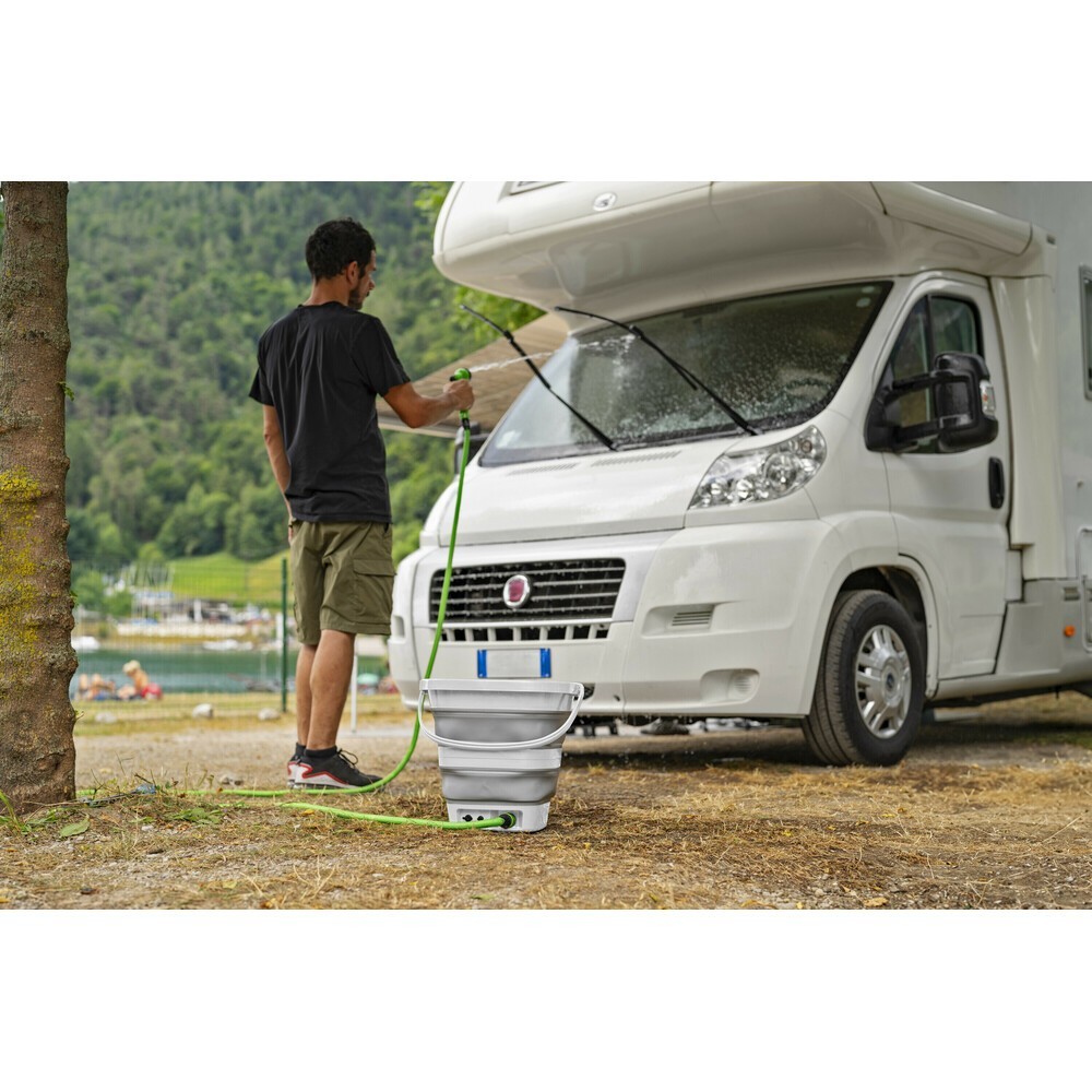 Facile da caricare tramite qualsiai caricabatteria USB standard (USB auto, powerbank, caricabatterie a parete). Permette di erogare acqua con 7 diverse modalità con portata massima: 6 L/min. Durata batteria in utilizzo continuato fino a 90 min (Batteria al litio integrata 2000mAh – 50W). Tubo elasticizzato da 5 metri. Dimensioni: aperto 36,5x36,5x33,8 cm - chiuso 36,5x36,5x7,5 cm