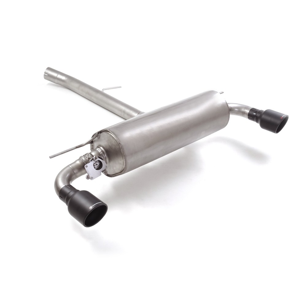 Posteriore inox sdoppiato con terminali rotondi 2x 102mm Sport Line Black con valvola integrata. Il controllo della valvola avviene tramite il motorino della valvola originale. Entrata diametro tubo 75.5mm. Diametro esterno tubo 76mm. Applicazione: Toyota Supra MK5 GR 2.0 190kw +Fuji Speedway dal 2019