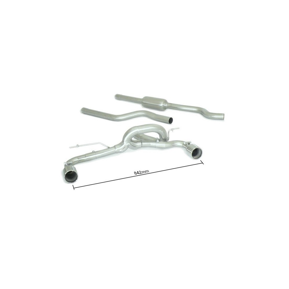 Centrale inox + tubo posteriore inox sdoppiato con terminali rotondi 2x90mm.