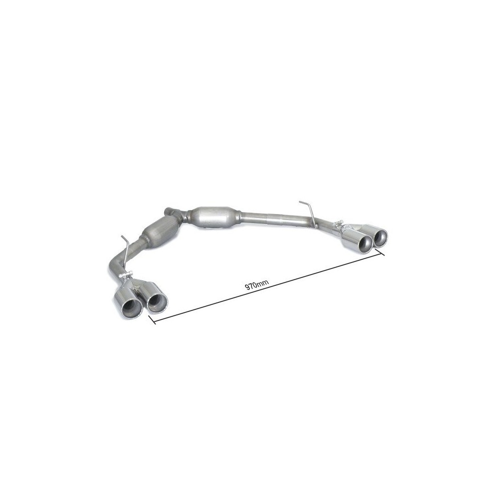 Posteriore inox sdoppiato con terminali rotondi 2x80mm sfalsati. Necessita modifica paraurti originale. Entrata diametro interno: 50mm. Diametro esterno tubo: 54mm. Applicazione: Alfa Romeo Giulietta (940) 1.4TB GPL 88kw dal 2012