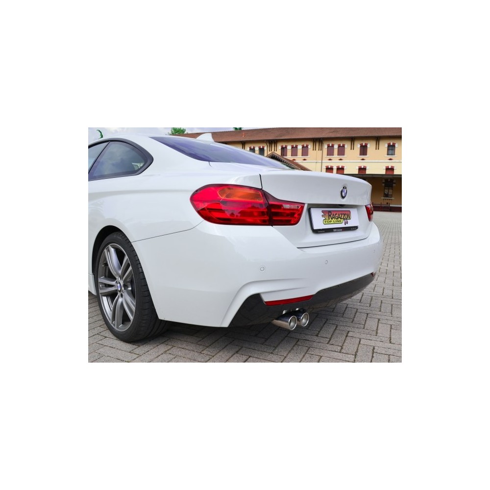 Posteriore inox omologato marca RAGAZZON con terminali rotondi 2x70 mm sfalsati - Paraurti Allestimento ''M-Sport'' - Necessita sottoparaurti BMW F32 428i. Montaggio con taglio ed innesto - Riduzione per montaggio su centrale originale inclusa nel kit. Caratteristiche: entrata diametro interno 60mm con riduzione 55mm. diametro esterno tubo 60mm. Applicazione: BMW Serie 4 F32 (Coupe') 420D - xD (135kW) 2013-2015