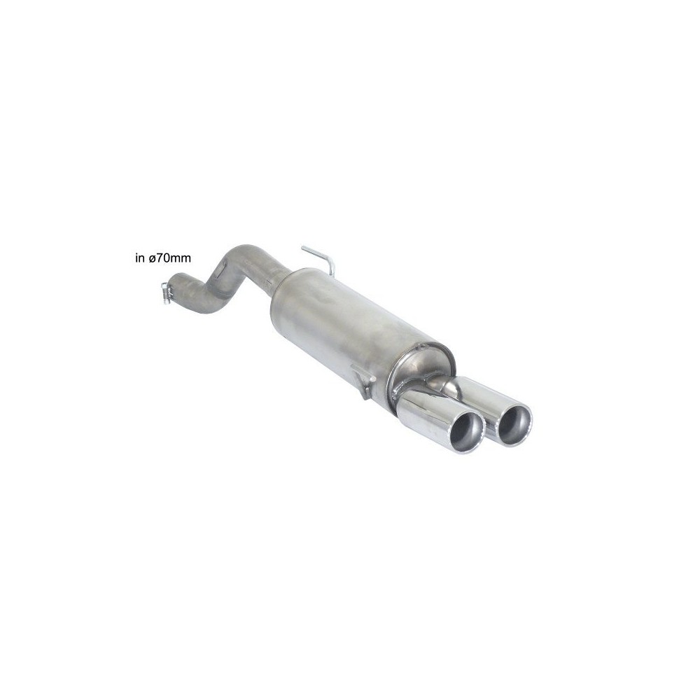 Posteriore inox omologato marca RAGAZZON con terminali rotondi 2x80 mm sfalsati - Linea maggiorata diametro 70 mm - da installare con 57.0085.00 / 55.0404.00. Linea maggiorata. Non compatibile con il diametro della linea originale. Caratteristiche: entrata diametro interno 70mm. diametro esterno tubo 70mm. Compatibilita': Abarth Grande Punto + Evo (typ199) - Abarth 1.4 TJET (114kW) 10/2007>> - Abarth 1.4 TJET kit esseesse (132kW) 10/2007>> - Evo Abarth 1.4 Turbo Multiair (120kW) 10/2009>>
