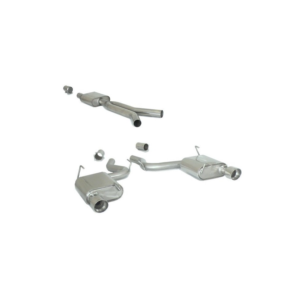 Centrale inox + Posteriore inox omologato marca RAGAZZON sdoppiato con terminali rotondi 2 / 102 mm Sport Line Linea maggiorata diametro 70 mm.Compatibile con linea originale. Non richiede alcuna modifica. Riduzione per montaggio su catalizzatore originale inclusa nel kit. Caratteristiche: entrata diametro esterno 70mm con riduzione diametro interno 57mm. diametro esterno tubo 70mm. Compatibilita': Ford Mustang VI 2.3i Ecoboost (233kW) 2015-
