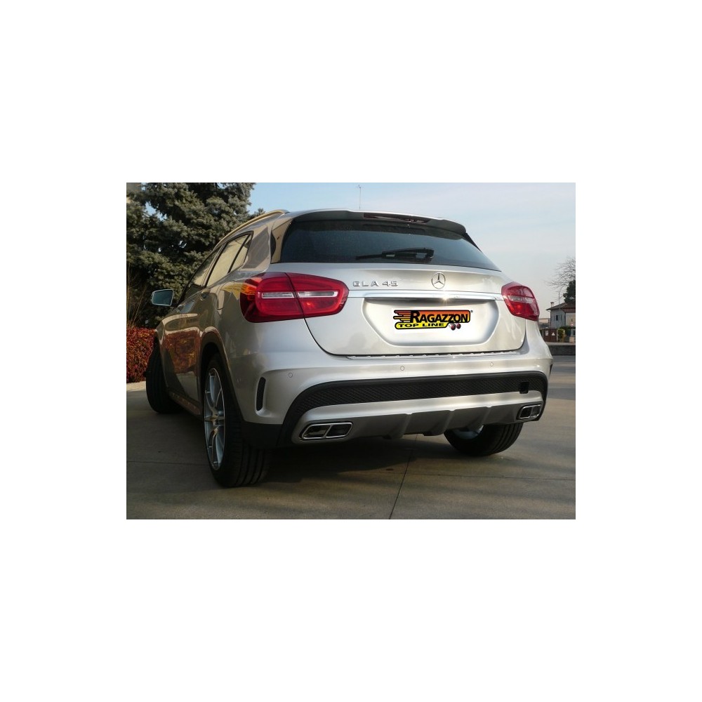 Posteriore inox omologato marca RAGAZZON sdoppiato - Paraurti Allestimento ''GLA 45''. Montaggio con taglio ed innesto - Riduzione per montaggio su centrale originale inclusa nel kit. Caratteristiche: entrata diametro interno 60mm con riduzione 55mm. diametro esterno tubo 60mm