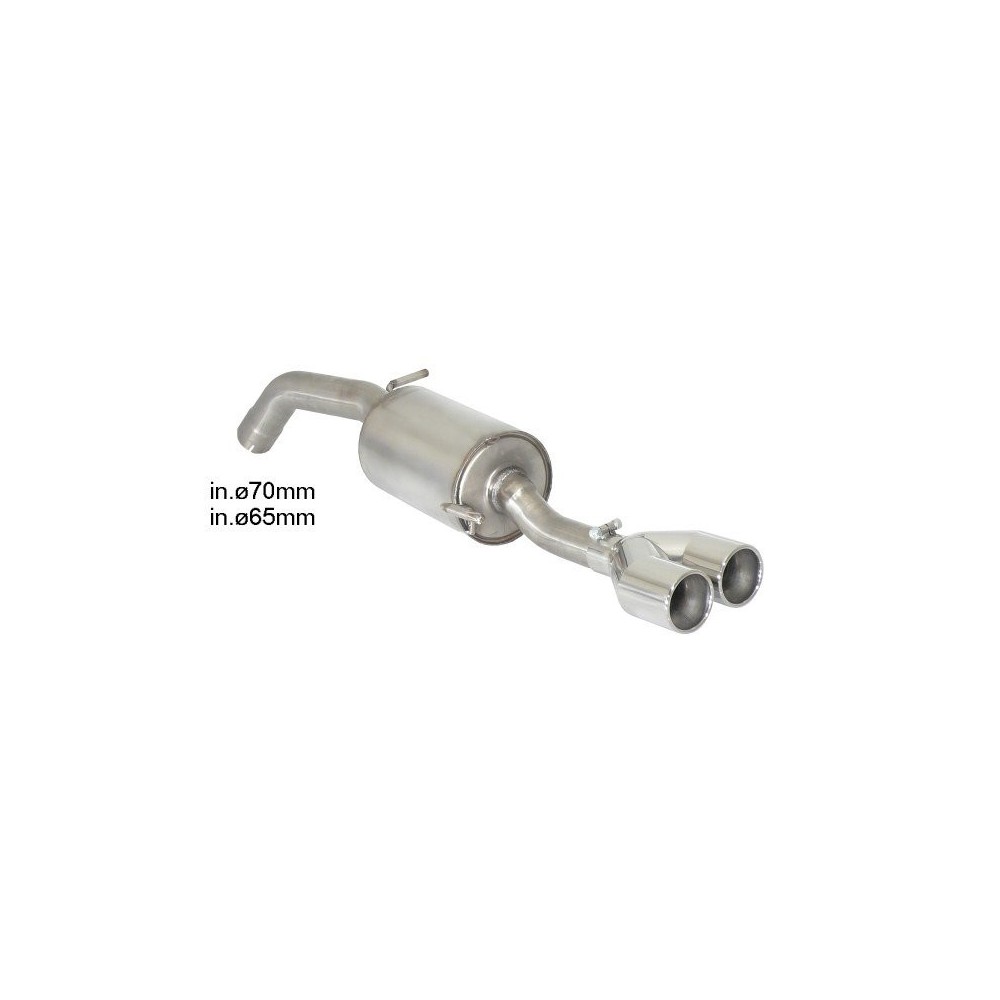 Posteriore inox omologato marca RAGAZZON con terminali rotondi 2x90 mm. Montaggio con taglio ed innesto - Riduzione per montaggio su centrale originale inclusa nel kit. Caratteristiche: entrata diametro interno 70mm con riduzione 65mm. diametro esterno tubo 70mm. Compatibilita': Peugeot RCZ - 1.6 Turbo (147kW) 2010>>