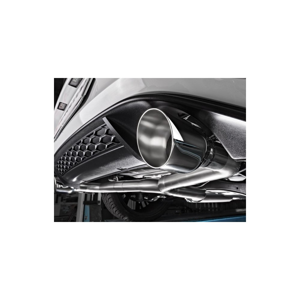 Centrale anteriore in inox + Centrale inox + Tubo posteriore inox sdoppiato con terminali rotondi 2 / 102 mm Sport Line. Compatibile con linea originale. Non richiede alcuna modifica. Riduzione per montaggio su catalizzatore originale inclusa nel kit. Entrata diametro interno 76mm con riduzione 65mm. Diametro esterno tubo 76mm. Compatibilita': Volkswagen Golf VII 2.0TSI GTi ''Clubsport'' (195/228kW) 2016>> 2.0TSI GTi (162/169kW) 2013>>