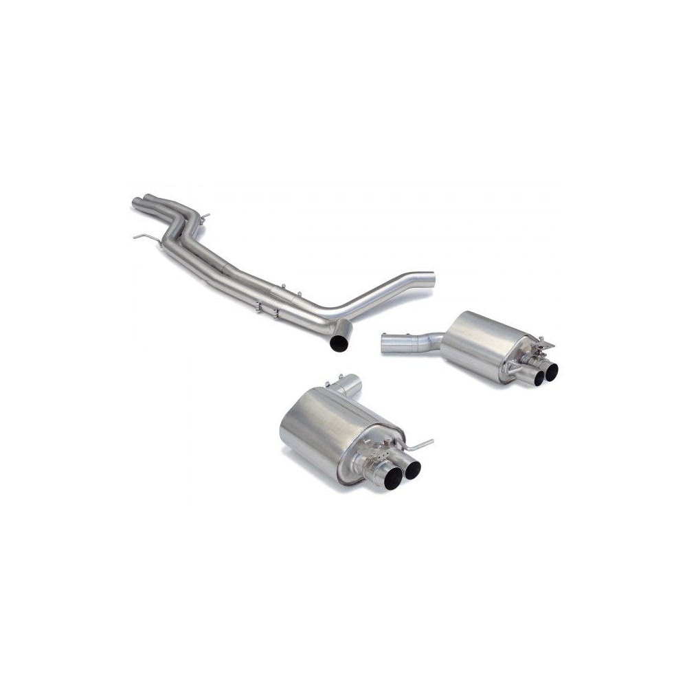 Applicabilita': Audi RS6 (4G) Quattro Avant 4.0TFSI V8 412-445kw dal 2013. Tubo centrale Gr.N senza silenziatore inox + Posteriore inox sdoppiato. Il controllo della valvola avviene tramite il motorino della valvola originale. Linea maggiorata diametro 70mm. Linea maggiorata. Non compatibile con il diametro del centrale anteriore. Per montaggio su centrale anteriore originale ordinare separatamente manicotto (richiedi info)
