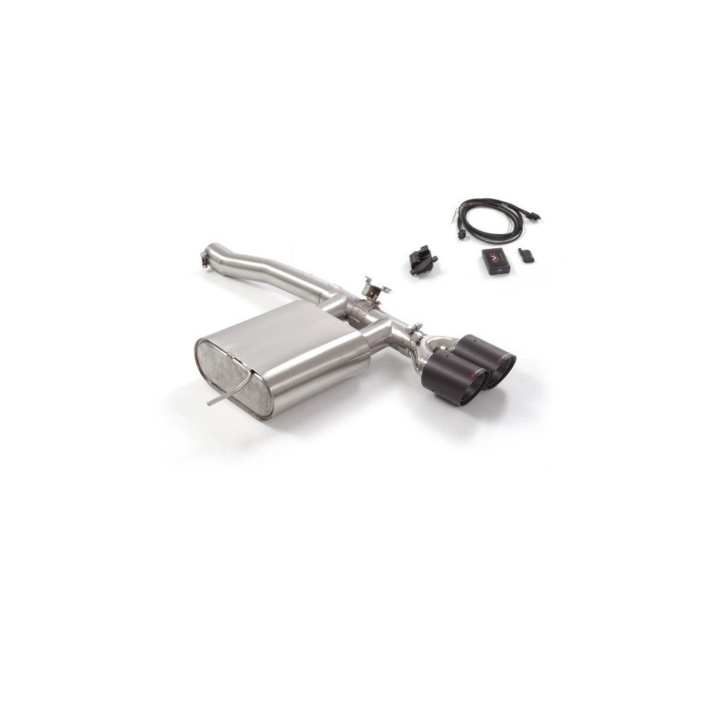Applicabilita': Mini Coooper S F56 2.0 141kw dal 2014. Posteriore inox con terminali rotondi 2x100 mm Carbon Shot, con valvola integrata. Il controllo della valvola avviene tramite il motorino elettrico e la scheda in dotazione. Linea maggiorata diametro 70 mm. Taglio ed innesto - Riduzione per montaggio su centrale originale inclusa nel kit. Entrata diametro interno 70mm con riduzione 60mm, diametro esterno tubo 70mm