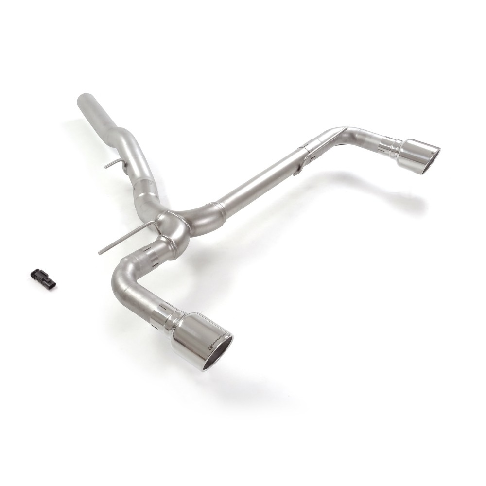 Tubo posteriore inox sdoppiato con terminali rotondi 2x 102mm Sport Line. Esclude valvola OEM. L'attuatore della valvola originale va scollegato dallo scarico con l'innesto dell'emulatore in dotazione. Linea maggiorata diametro 76 mm. Applicazione: Bmw Serie 1 F40 M135i xDrive (225kW) dal 11/2020