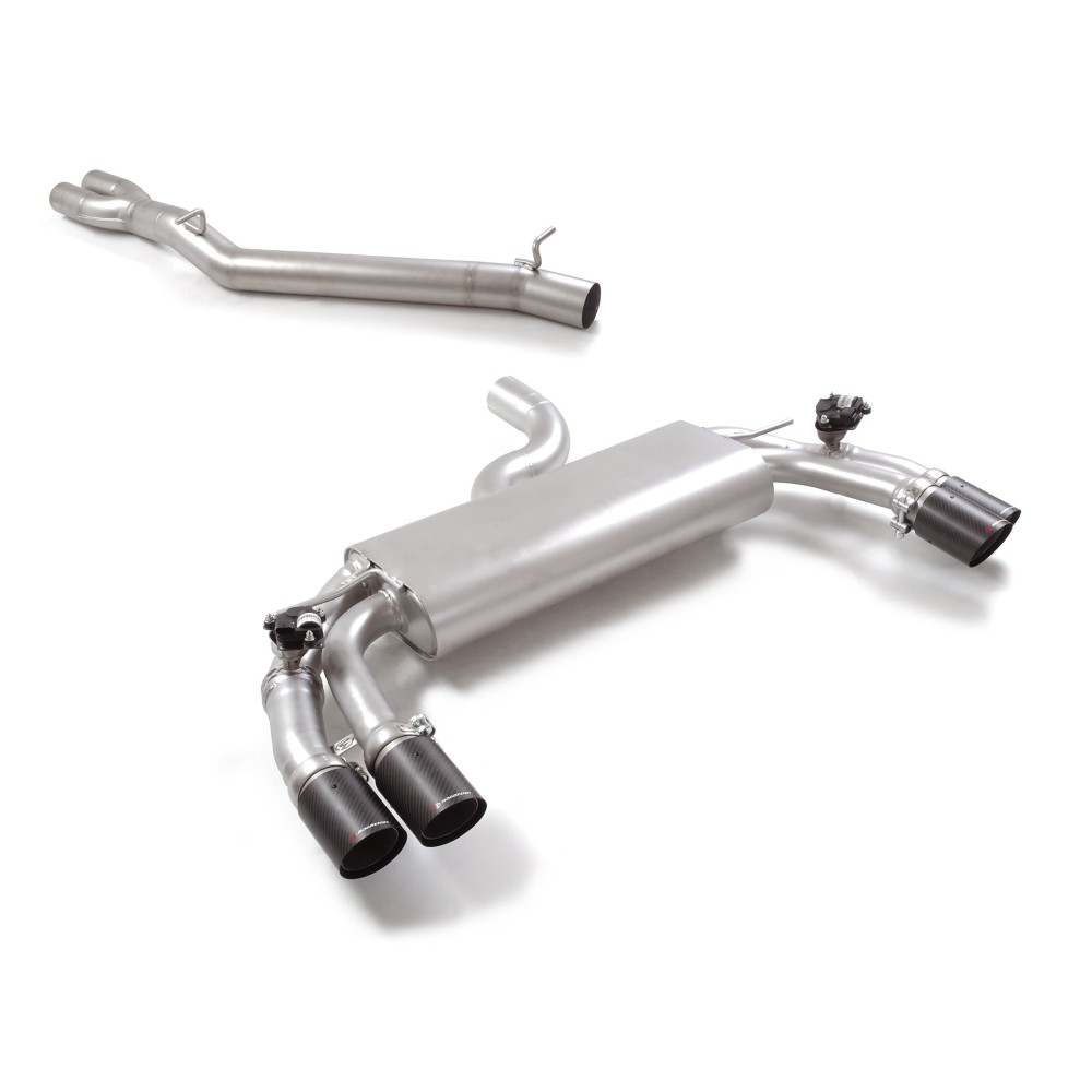 Tubo centrale Gr.N senza silenziatore inox + Posteriore inox sdoppiato con terminali rotondi 2 / 2x90mm Carbon Shot sfalsati. Con valvole integrate .Il controllo della valvola avviene tramite il motorino della valvola originale. Per montaggio su catalizzatore originale o su catalizzatore Ragazzon ordinare separatamente adattatore (richiedi info). Entrata diametro esterno 2x70mm. APPLICAZIONE: Cupra Formentor (KM) VZ5 2.5TSI 4drive (287kW) dal 2021