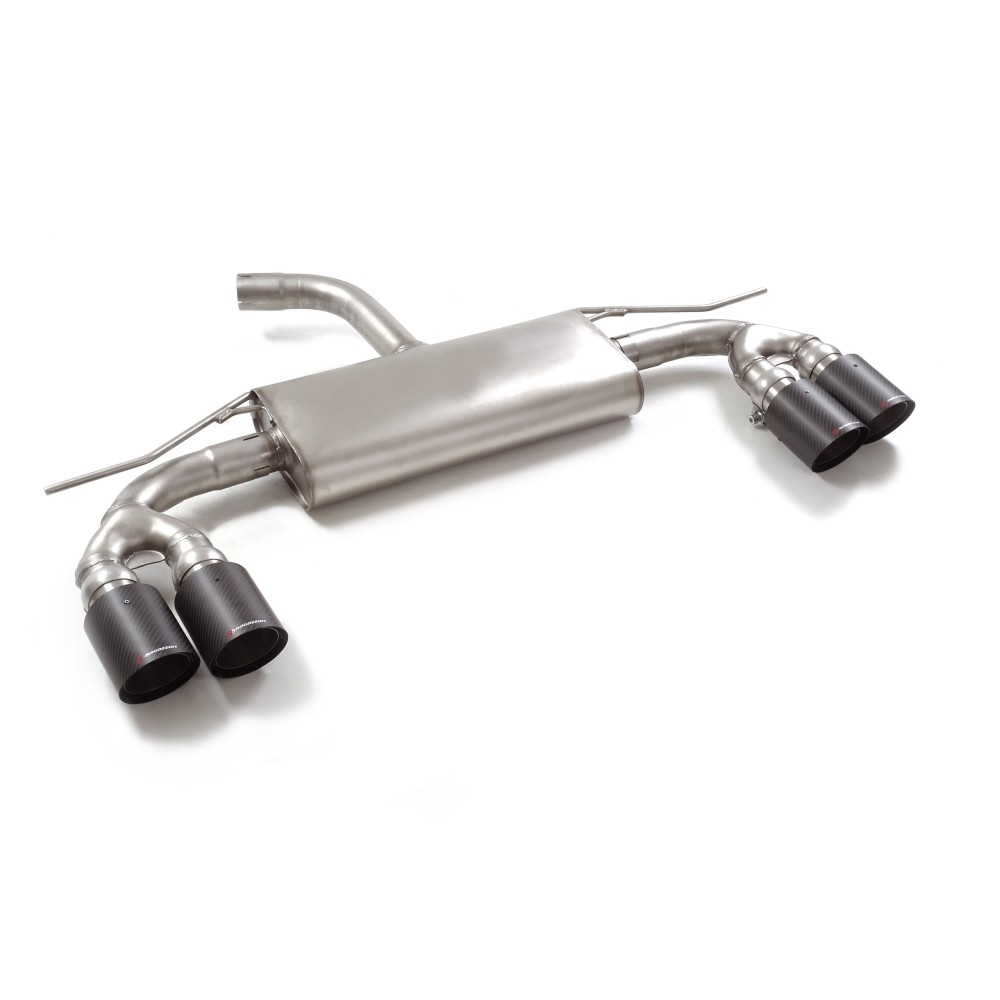 Posteriore inox sdoppiato con terminali rotondi 4x100 mm Carbon Shot sfalsati. Linea maggiorata diametro 60mm. Taglio ed innesto. Riduzione per montaggio su centrale originale inclusa nel kit. Necessita modifica paraurti originale oppure kit diffusore posteriore originale Cupra Formentor 300CV. Entrata diametro interno 60mm con riduzione 55mm. Diametro esterno tubo 60mm. APPLICAZIONE: Cupra Formentor (KM) 1.5TSI (110kW) dal 11/2020