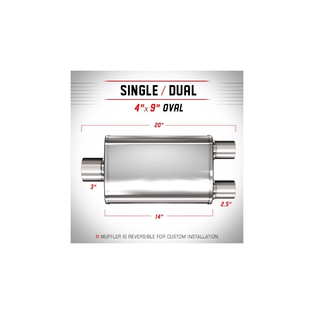 I silenziatori universali Magnaflow XL Chamber sono sviluppati appositamente per ridurre l'impatto acustico, hanno al loro interno una combinazione di tre camere con tubi perforati, strategicamente posizionati per ridurre le risonanze sonore ed aiutare il motore a creare potenza. Realizzati per durare, in acciaio inossidabile con finitura satinata, sono reversibili per una installazione personalizzata. INFO TECNICHE: Silenziatore ovale 4''x9'' (10.16x22.86cm) - Lunghezza totale: 20'' (50.80cm) - Lunghezza silenziatore: 14'' (35.56cm) - Uscite: 3'' e 2.50'' (7.62 e 6.35cm) - Posizione: Dual