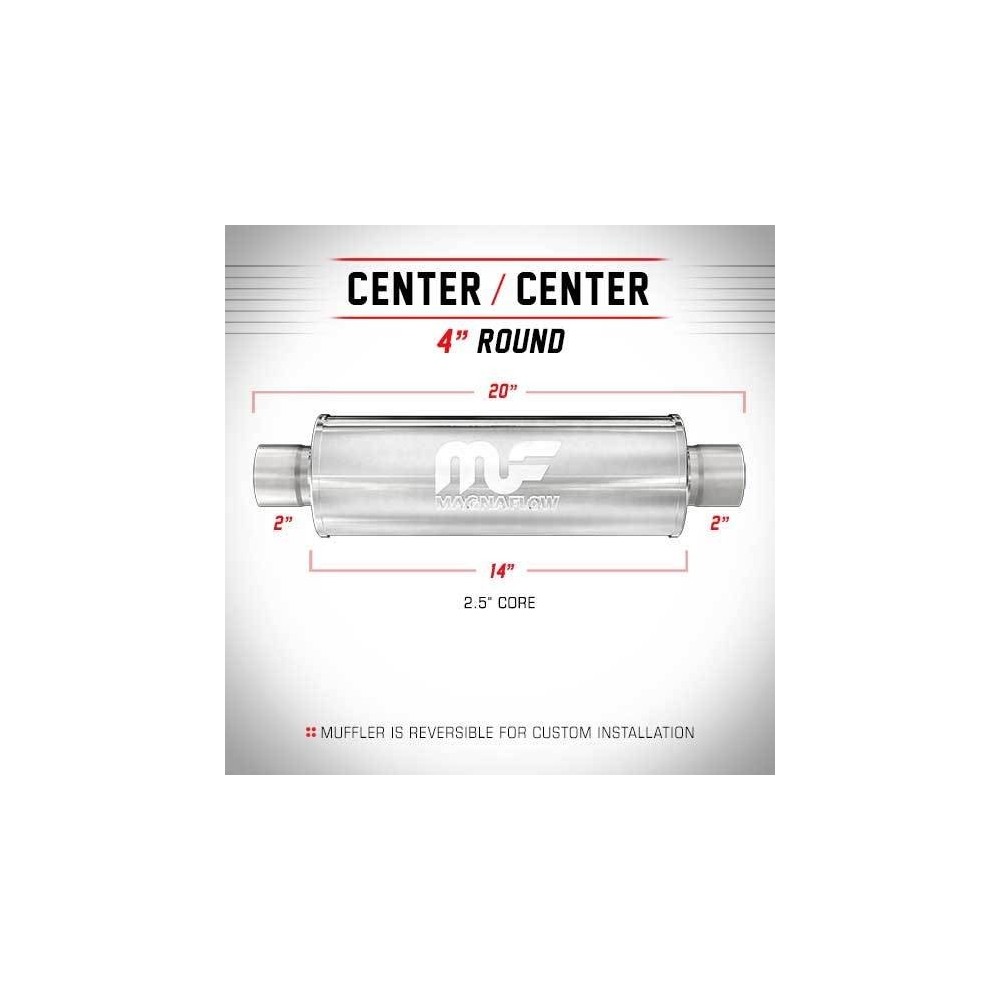 I Silenziatori MagnaFlow Performance sono in acciaio inox 100% e saldati con giunture a giro per una solida e robusta affidabilita' anche nelle condizioni piu' estreme. Sono caratterizzati da un flusso libero, che scorre dritto attraverso un nucleo perforato in acciaio inossidabile, avvolti in rete metallica e riempiti con fibra acustica per ottenere quel liscio, profondo tono. I Silenziatori sono incapsulati con materiale fonoassorbente per garantirne una lunga durata senza degradazione del suono. INFO TECNICHE: Silenziatore tondo 4'' (10.16cm) - Lunghezza totale: 20'' (50.8cm) - Lunghezza silenziatore: 14'' (35.56cm) - Uscite: 2'' e 2'' (5.08 e 5.08cm) - Posizione: Center/Center