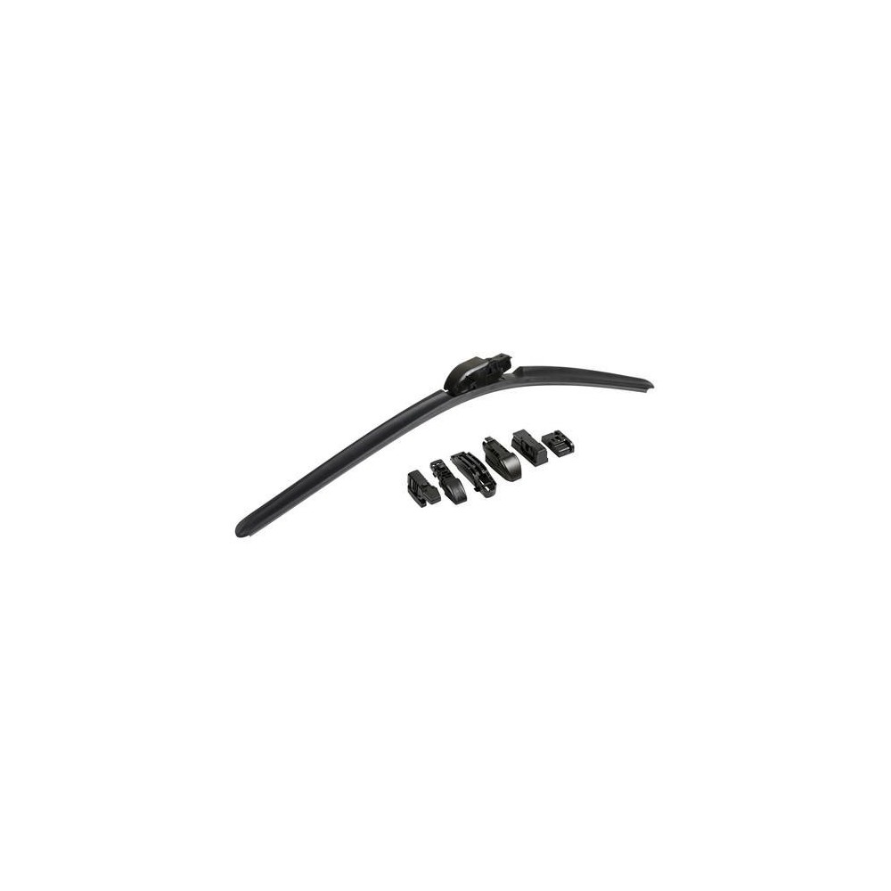 Sistema di montaggio multiplo con raccordi in dotazione per il montaggio su tutte le vetture equipaggiate con tergicristalli tradizionali o con spazzole senza articolazioni. Design avanzato ed aerodinamico. Struttura in acciaio con rivestimento in gomma. Perfetta aderenza per una pulizia efficace. Lamina in gomma speciale con trattamento in grafite per minimizzare l'attrito a contatto con il cristallo. Adattatori inclusi: B-D-E-F-G
