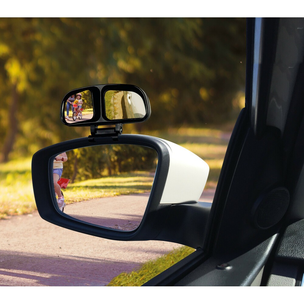 Doppio specchio retrovisore supplementare adatto per applicazione sullo specchietto laterale originale sia destro che sinistro. Regolazione specchi singolarmente e orientabili in tutte le angolazioni. Non sarà più necessario regolare lo specchietto durante le manovre o durante la guida, potrai scegliere lo specchietto a seconda della manovra che devi compiere. Elimina tutti i punti ciechi ed espande il campo visivo per una maggiore sicurezza di guida, durante le manovre ed il parcheggio del veicolo. Adatta a tutti i tipi di veicoli. Fissaggio con clip + Base autoadesiva. Struttura resistente agli urti e a tutte le condizioni meteorologiche. Dimensione: 130x70x45mm. Lunghezza: 65 + 50mm. Larghezza: 45mm
