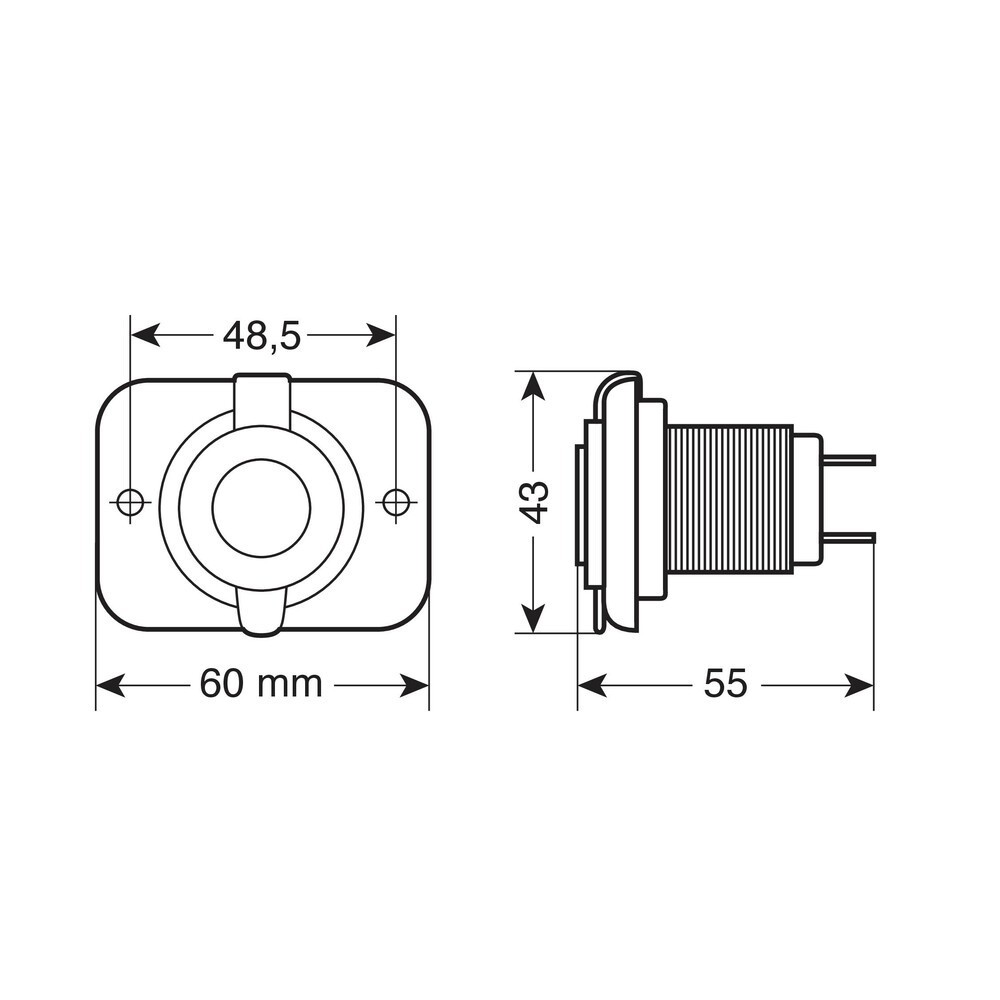 Presa di corrente Safe Lock, 12/24V. Sistema di bloccaggio anti-vibrazione. Montaggio ad incasso, utilizzo interno o esterno. Impermeabile, con coperchio di protezione. Idoneo per spinotti Safe lock o tipo Engel-type (max 15A). Per tutte le dimensioni vedi foto allegata.