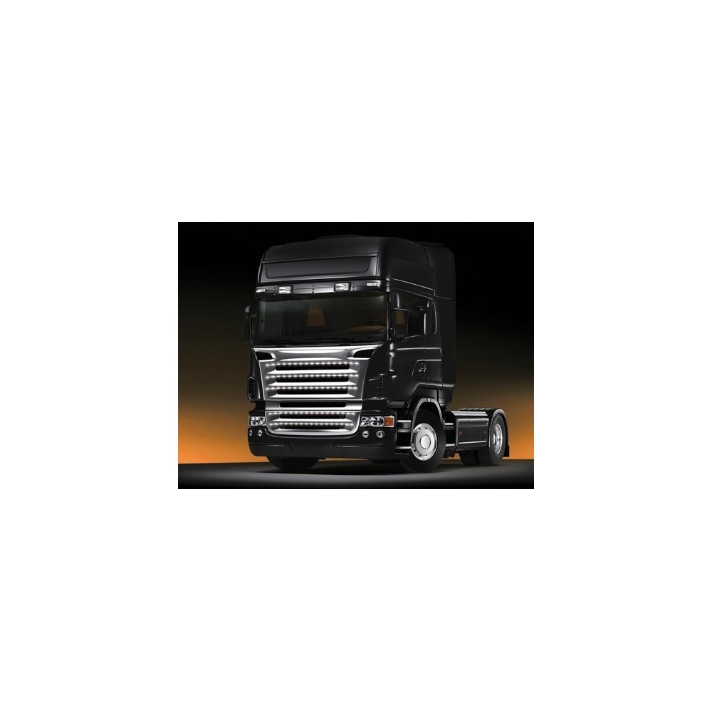 Striscia a led 24V adesiva per luce diurna, impermeabile, per uso esterno, ultrasottile, si inserisce virtualmente in qualsiasi fessura, flessibile, puo' essere accorciata tagliando lungo le linee tracciate, basso assorbimento di corrente, il rivestimento ed il circuito stampato permette di tagliarla ed accorciarla a multipli di 5 led.