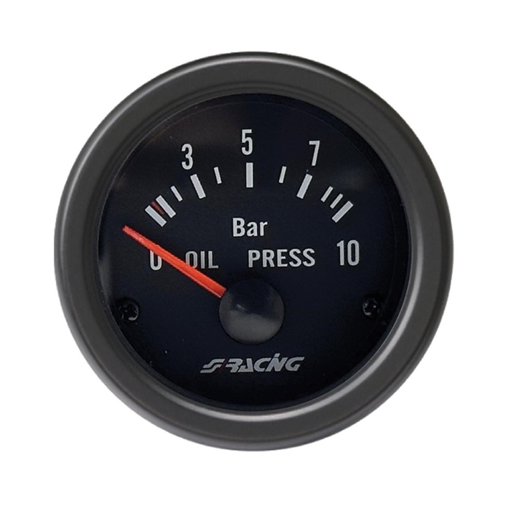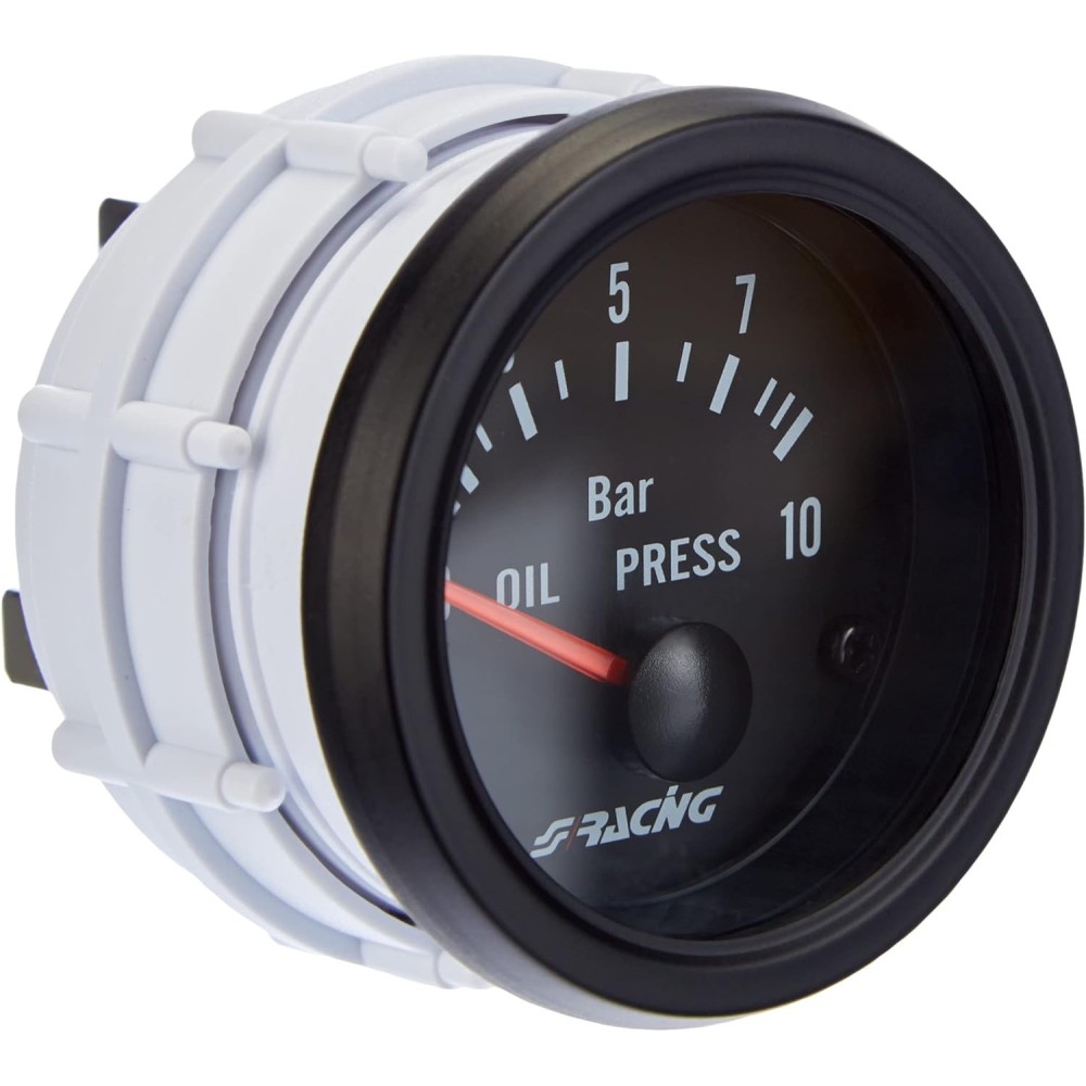 Strumenti da 2'' black line. Indicatore elettrico pressione olio con sensore. Strumenti retroilluminali, fondo nero, bordo nero, luce led bianca.