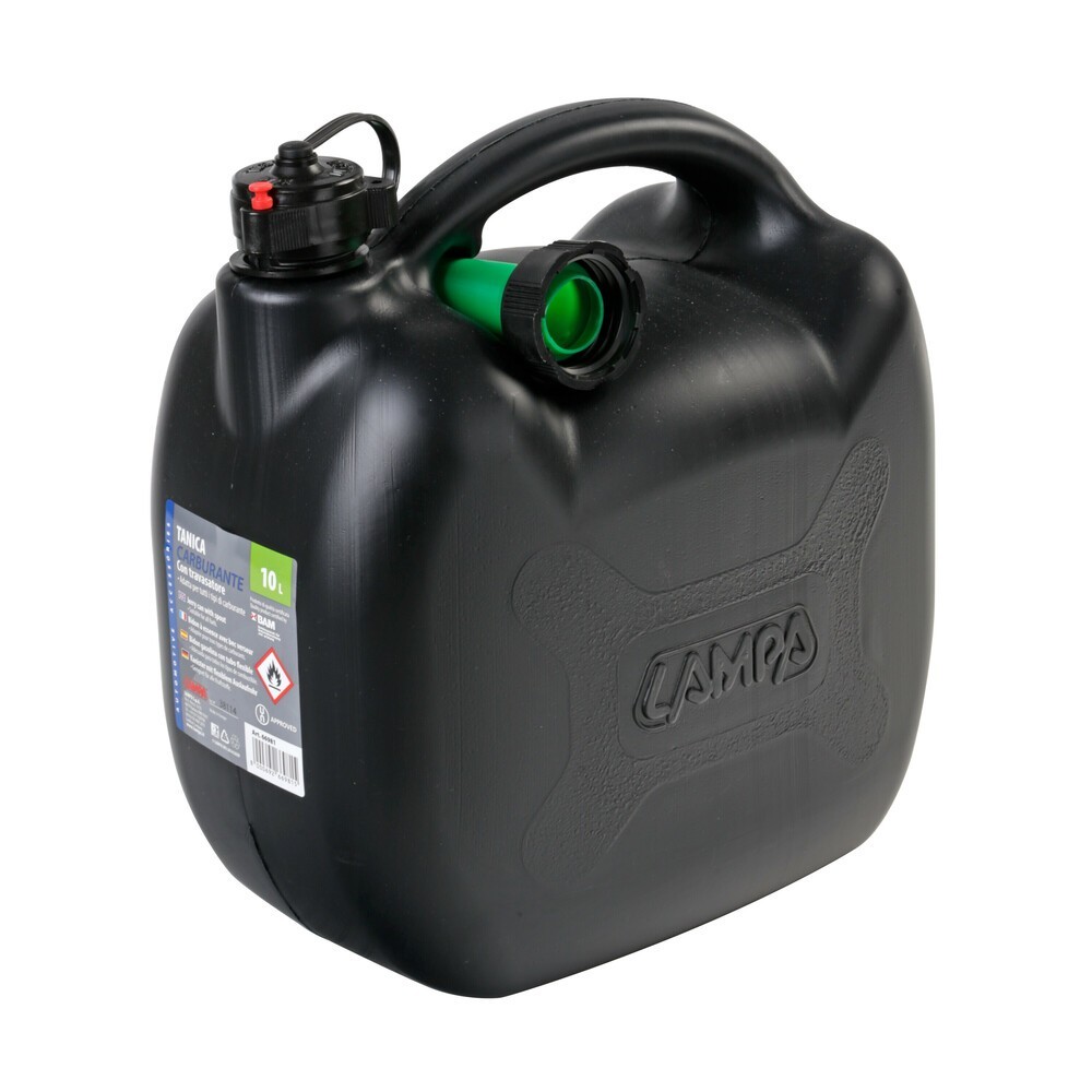 Tanica carburante completa di travasatore. Omologata a norma UN. Adatta per tutti i carburanti. Capacita' 10 litri.