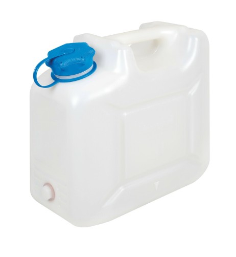 Tanica alimentare con omologazione europea per acqua potabile ed alimenti. Con imboccatura maxi da diametro 48 mm per permettere la pulizia interna. Complete di attacco filettato per l'inserimento del rubinetto in plastica. Rubinetto in plastica fornito in dotazione ed alloggiato nell'apposito comparto ricavato nella stessa tanica. Impilabili per uno stoccaggio intensivo in poco spazio. Disponibile nella versione da 12 e da 22 litri. dimensione 30x35x16cm